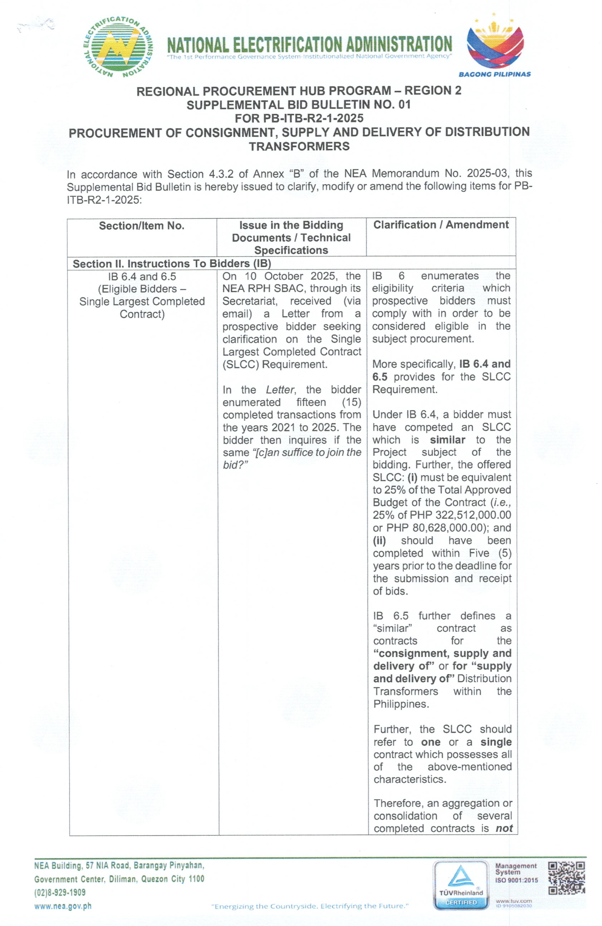 INVITATION TO BID - R2 RPH - TRANSFORMERS (RPH SBB No. 1 for PB-ITB-R2-1-2025)